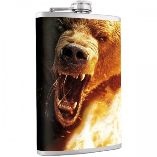 Компактная и практичная емкость для спиртного пригодится тем, кто проводит свободное время за рыбалкой, охотой, в туристических походах. Украшена красочным изображением медведя.