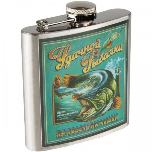 Компактная и практичная емкость для спиртного пригодится тем, кто проводит свободное время за рыбалкой, охотой, в туристических походах. Поверхность фляжки отлично подходит для памятной гравировки. Украшена красочным изображением щуки.