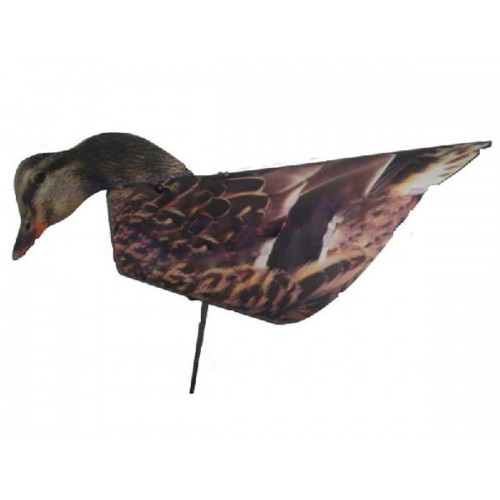 Благодаря особенностям конструкции эти фотореалистичные профили уток двигаются даже при небольшом ветре. Могут использоваться самостоятельно или в комбинации с классическими профилями. Чучело быстро собирается и разбирается. Металлический штырь для установки флюгера легко втыкается или вбивается в почву.