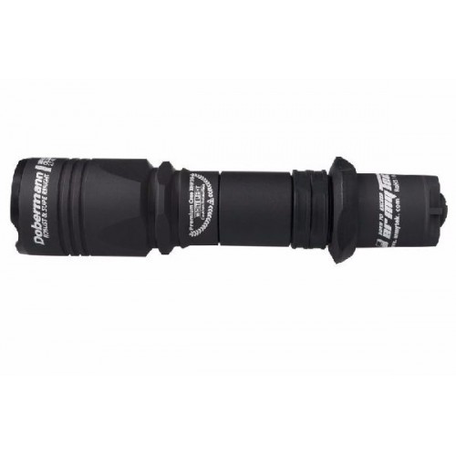 Dobermann - самый компактный из всех тактических фонарей Armytek! При длине корпуса 14 см - диаметр головной части всего 3,4см (неоспоримое преимущество для крепления под ствол). Оптика, несмотря на размер, обеспечивает отличную дальнобойность. Стекло посажено на глубину 8 мм и "запечатано" стальным ударным безелем, покрытым нитридом титана (сверхпрочное антирефлекторное покрытие).