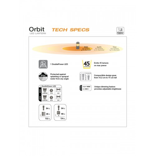 Яркая, не слепящая карманная ультралёгкая мини-лампа. Orbit идеален для походов, где критичен каждый лишний грамм. Double Power диод со световым потоком до 45 люмен и матовая колба дают яркий рассеянный свет. Система двойного рефлектора захватывает и максимизирует световой поток. Уникальная плавная регулировка яркости. Компактно собирается для транспортировки до 102 мм, высота в разобранном виде 140 мм. Складное кольцо для подвеса.