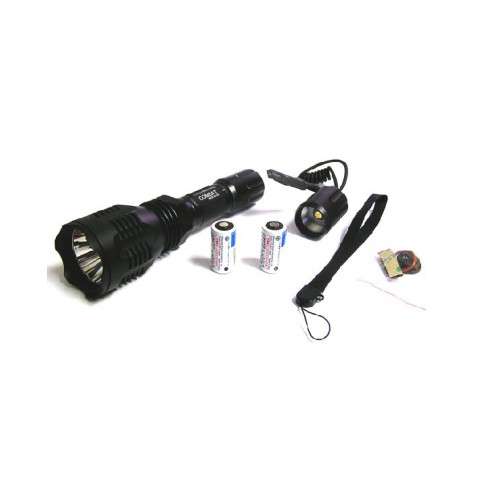 Корпус фонаря выполнен из прочного алюминия. Диаметр основной трубы составляет 1", что позволяет использовать крепления для обычных оптических прицелов. Высокое качество сборки позволяет фонарю выдерживать большие механические нагрузки без вреда для конструкции. Питание осуществляется от 2 батареек типа CR123А заряда которых хватает на 2,5 часа непрерывной работы. Также для более удобной работы с фонарем в комплекте поставки присутствует выносная кнопка для более комфортной работы.