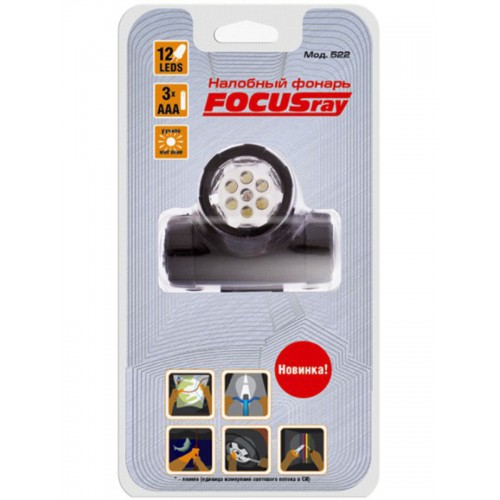 Фонарь Focusray 522 относится к категории налобных фонарей. Корпус выполнен из пластика, освещение производится 12 светодиодами. Питание осуществляется от 3 источников типа ААА (R03), в комплект входит также эластичный ремешок. Фонарь Focusray 522 может быть использован как профессиональный фонарь, фонарь для туризма или рыбалки, а часто и как необходимый предмет для водителя. В случае поломки в ночное время или при необходимости выйти в неосвещенном месте налобный фонарь Focusray 522 сыграет свою чрезвычайно полезную роль.