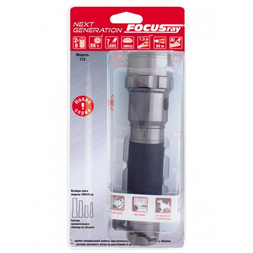 Ручной фонарь Focusray 773 с прочным корпусом из авиационного алюминиевого сплава с антикоррозийным покрытием и максимальной влагозащитой. Такой фонарик будет всегда хорошим помощником, дома, на даче и даже в походе или на охоте. В фонаре используется встроенная линза, что способствует усилению светового потока от светодиодов и обеспечит хороший световой пучок. При меньших энергозатратах, т.к. установлено 7 мощных светодиодов, вы получаете намного больше света нежели от простых ламп накаливания, а удобная рукоятка будет надежно лежать в вашей руке.