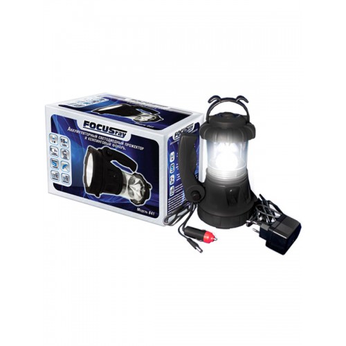 Аккумуляторный светодиодный прожектор и кемпинговый фонарь Focusray 841. Универсальный автономный источник света для дома, дачи, туризма, рыбалки. Мощный светодиодный фонарь работает в двух режимах: прожектора и кемпингового фонаря. У фонаря влагостойкий корпус. Литий-ионная аккумуляторная батарея 1200mAh позволяет использовать фонарь в режиме прожектора на протяжении 5 часов. Перед зарядкой обязательно выключите фонарь и не включайте его на протяжении всего процесса зарядки. Время первого заряда не менее 7 часов, в последствии заряд осуществляется за 6 часов. (не более 8 часов). Если фонарь долго не используется, заряжайте его каждые 3 месяца. Мощность светодиода в прожекторе - 1 V,
