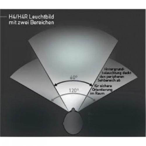 Новая форма светового пятна: квадратное пятно света в центре (60°C), более широкий ареал периферического света (120°C);