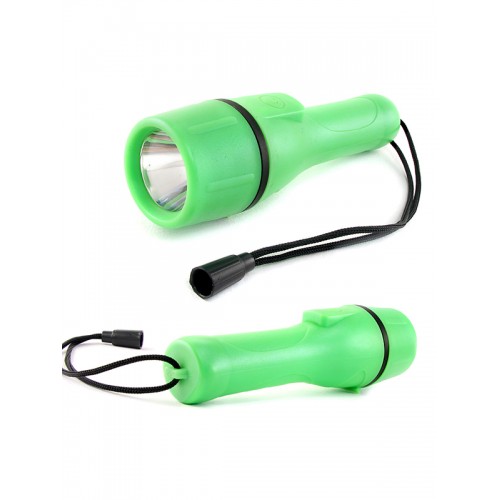 Надежный универсальный фонарь, прекрасно работает при любых погодных условиях. Незаменим для любителей рыбалки. Корпус фонаря выполнен из высококачественной резины, что делает его ударопрочным и влагозащищенным. Глубина погружения - 1 м. Яркий светодиод. Ремешок для крепления на запястье. Технические характеристики: элементы питания – 2хАА (R6) в комплект не входят, источник света – яркий светодиод 1 Вт.