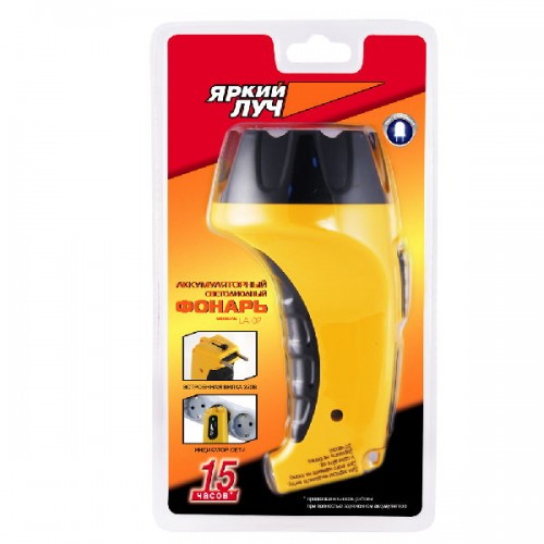 Источник света - 7 сверхярких светодиодов. Фонарь заряжается от сети 220В. Индикатор сети. Продолжительность зарядки 15-18 часов. 15 часов работы при полностью заряженном аккумуляторе. Эргономичная ручка. Технические характеристики: аккумулятор свинцово-кислотный 4В, 0.8Ач.