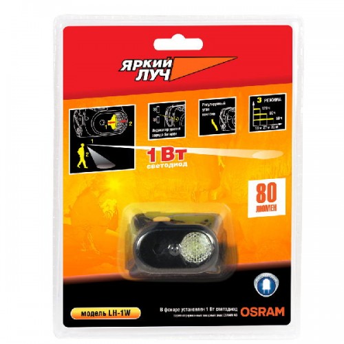 LH-1W это компактный, легкий и мощный налобник с электронным управлением. Он отлично подойдет для практически любых задач: туризм, охота, рыбалка, ремонт и т.д. Благодаря светодиоду нового поколения OSRAM фонарь стал ярче на 40%. Световой поток 80 Люмен. Электронная система управления делает работу с фонарем очень удобной. Через несколько секунд после включения и выбора режима яркости фонарь "запоминает" этот режим как рабочий и при следующем нажатии на кнопку происходит выключение фонаря, а не переход в следующий режим. Трехцветный индикатор на корпусе фонаря позволяет визуально контролировать состояние батарей. При нехватке питания фонарь переходит в более экономичный режим, а не выключается. Оснащен индикатором заряда батареи и специальным экраном для смены фокусировки луча. Линза не закрыта экраном. Луч фонаря сфокусирован. Это положение используется для освещения объектов на дальнем расстоянии.
