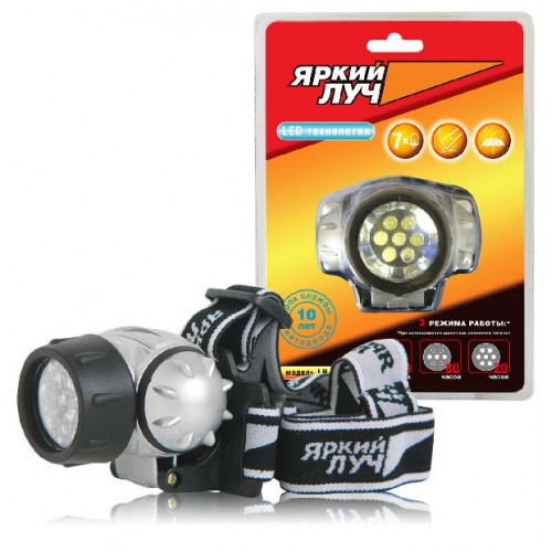 Налобный светодиодный фонарь работает в трех режимах: "экономичный" - горит 1 светодиод, "оптимальный" - горят 3 светодиода, "яркий" - горят 7 светодиодов. Корпус выполнен из ударопрочного пластика, имеет влагозащищенную конструкцию.