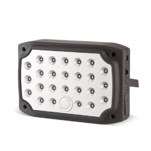 Портативный аккумуляторный фонарь LT-25A из прорезиненного пластика работает без батареек. Фонарь просто незаменим для тех людей, кто длительное время любит проводить вдали от благ цивилизации: на даче, в походе, на рыбалке. Есть возможность подзарядки фонаря при помощи динамо, для этого просто выдвиньте ручку и вращайте по часовой стрелке некоторое время. В комплект входят сетевое и автомобильное зарядные устройства. Уникальный крючок-подвес и липучка позволят разместить фонарь практически на любой поверхности для комфортного отдыха. Основные характеристики фонаря: материал корпуса: прорезиненный пластик, встроенный литиевый аккумулятор 3.6 В, 1800 мАч, количество циклов 500, источник света: 25 светодиодов, срок службы 50 000 часов. Два режима работы фонаря: 10 светодиодов, время работы 5 часов при полностью заряженном аккумуляторе, 25 светодиодов, время работы 2 часа при полностью заряженном аккумуляторе. Встроенный индикатор заряда: красный цвет диода индикатора - процесс зарядки, зеленый цвет - аккумулятор полностью заряжен.