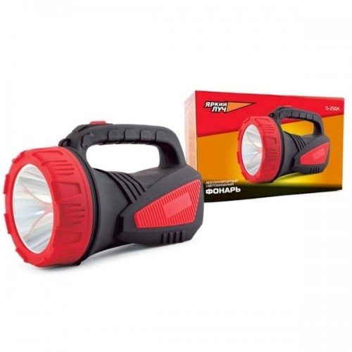 Фонарь ЯРКИЙ ЛУЧ S-250A аккум. св/диод. прожектор 5W, 2 режима (100/250лм), прорезин.корпус.