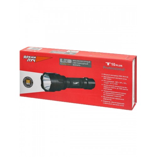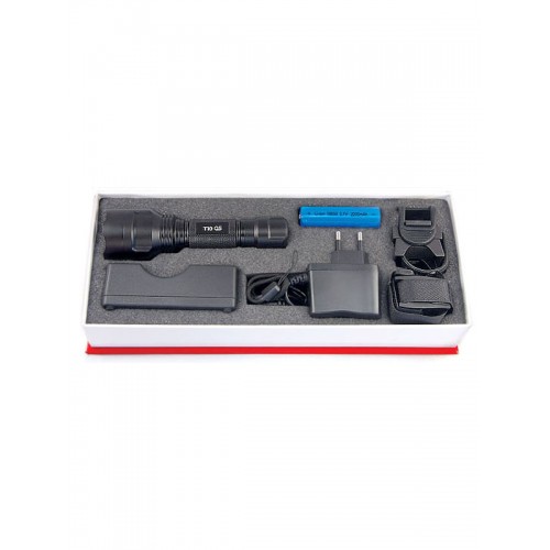 T10 - самый дальнобойный из всей линейки. Его мощный светодиод и гладкий отражатель большого диаметра обеспечивают сфокусированный световой поток, с помощью которого можно освещать объекты на большом удалении от них. Также в комплекте есть два кронштейна, позволяющие крепить фонарь под любыми углами к различным предметам, в том числе на велосипед или велошлем. При этом Т10 достаточно экономичен, это позволит подолгу использовать его автономно и, что немаловажно, доступен по цене. Мощный светодиод CREE XR-E Q5. Максимальный световой поток 200 люмен. Пять режимов: 100%, 50%, 10%, «строб» 12 Гц, SOS. Литий-ионный аккумулятор 18650. Допускается использование батареек формата А123. Твердоанодированный корпус из авиационного алюминия не подвержен коррозии. Металлический зеркальный рефлектор. Инвертор, обеспечивающий стабильный световой поток. Комплектация: зарядное устройство от сети ~230 В, литий-ионный аккумулятор 18650, крепление на руль велосипеда, крепление на шлем.