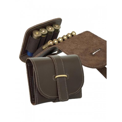 Комбинированный кожаный патронташ предназначен для сохранности и ношения 10 патронов нарезного и гладкоствольного оружия, отличается практичностью, удобством и функциональностью. Патронташ для охоты выполнен из натуральной кожи, внутренняя часть каждой ячейки изготовлена из прорезиненной ленты, благодаря которой патрон надежно фиксируется в ячейке. Кожаный футляр для патронов напоминает охотничий складной кошелек, закрывается на клапан застежкой в виде ремешка через кольцо пикколо, имеет очень компактные размеры, с легкостью помещается в карман одежды. Комбинированный охотничий патронташ считается универсальным, поскольку позволяет носить одновременно несколько видов патронов различного калибра, использоваться как на поясе, так и в кармане, благодаря закрытому клапану служит надежной защитой для патронов от попадания грязи, дождя или случайного выпадения патрона из ячейки.
