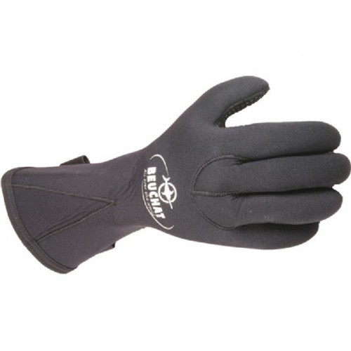 Пятипалые перчатки Beuchat Nordik анатомического кроя из неопрена 5 мм с наружным антипроскальзывающим покрытием. Имеют форму расширяющуюся на запястьях. Резиновые застежки на липучках идеально препятствую проникновению воды. Внутреннее покрытие - нейлон.