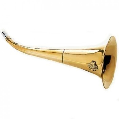 Горн охотничий из полированной латуни, длиной 40 см. Горн изогнутый с круглым раструбом. К горну прикреплены 2 кольца для подвески на ремешок. Охотничий горн предназначен для подзыва охотничьей собаки или передачи звуковых сигналов на охоте. Встроенный пищик освобождает от необходимости учиться правильно извлекать звук. Отличный подарок охотнику. Ремешок в комплект не входит. Длина горна - 40 см., диаметр раструба - 8,5 см. Вес - 250 грамм. На горне есть эмблема в виде головы кабана.