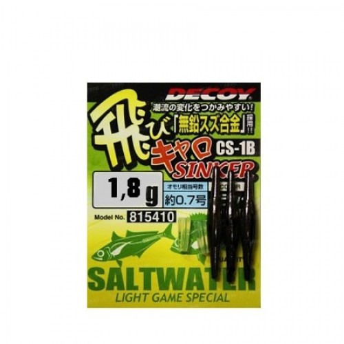 Одним из важных элементов оснастки спиннинга и удочек является утяжелитель. По своей важности он стоит в одном ряду с крючком, леской и поплавком. Эти грузила предназначены для того, чтобы поддерживать леску в натянутом состоянии, и чтобы помогать удерживать и опускать крючок с наживкой на необходимый уровень ловли. Decoy CS-1B Tobicalo Sinker - скользящее грузило веретенообразной формы, предназначенное для дальнего заброса сверхлёгких приманок. В продолный разрез в теле грузила устанавливается ваша леска, которая крепится предварительно заведенными заглушками. Подобная система монтажа позволяет быстро заменить вес и место расположение огрузки в зависимости от ситуации. Утяжелитель оснащен двумя силиконовыми кембриками, которые способны фиксировать грузик на главной лекски, тем самым давая возможность регулировки длины поводки. Благодаря оптикаемой конусной форме, груз отлично подойдет для ловли в сложных местах и способом волочения по дну.