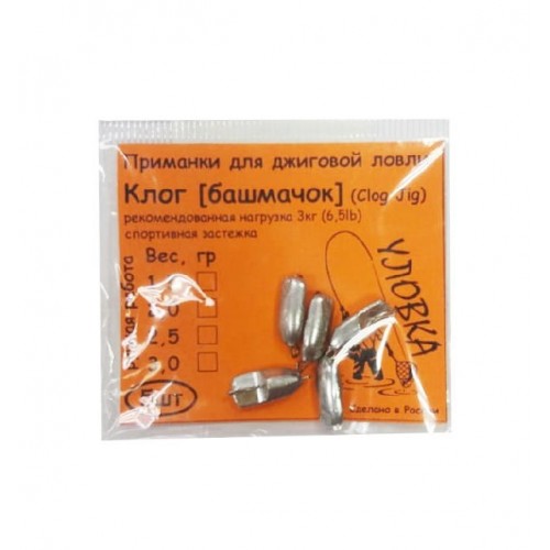 Груз для джиговой ловли "Клог" (башмачек) оснащен спортивной застежкой. Рекомндованная нагрузка - 3кг (6,5 lb).