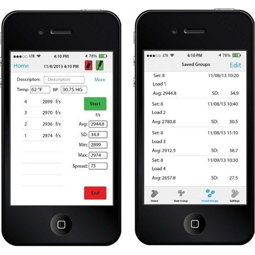 Хронометр может также передать данные о скорости выстрела через 15-ти дюймовый аудио Jack кабель (входит в комплект) на ваш iPhone или iPad. Бесплатное приложение доступно для загрузки, которое отображает скорость каждого выстрела на экран телефона и записывает его с другими данными и условиями окружающей среды. Приложение также автоматически вычисляет Среднюю скорость, Стандартное отклонение, Минимум, Максимум и Скорость выстрела. Данные сохраняются в устройстве и могут быть экспортированы по электронной почте или просто воспроизведены для справки в более поздние сроки. Козырьки хронометра очень широкие, они надежны в солнечные дни и изготовлены из прочного синтетического материала. Замеры скорости от 5 до 9999 кадров в секунду. Есть ¼ -20 резьбовые вставки на нижней части корпуса для установки треноги, работает на 9-ти вольтовой батарее типа "Крона" (приобретается отдельно).