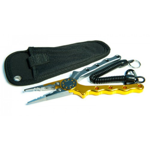 Предназначены для монтажа всевозможных оснасток, очень удобны при замене тройников на приманках. Благодаря сменным прочным, очень острым лезвиям, изготовленным из хромо-ванадиевого сплава, способны легко перекусывать не только плетеную леску, но и проволочные поводки. Пассатижи выполнены из закаленной, нержавеющей стали. Имеют титановое покрытие. Удобные обрезиненные рукоятки с "пальцевым" профилем облегчены за счет сквозных отверстий, которые дополнительно могут использоваться для крепления. Поставляются в комплекте с гофрированным крепежным шнуром и плотным чехлом, сделано в Японии. Принципиальное отличие моделей состоит в различном расположении режущих узлов. У PA-77811 он внутренний, у PA-77812 он расположен сбоку. Кроме того, профиль губок PA-77811 рельефный, а у PA-77812 - прямой. Превосходный инструмент Pontoon21 PA-77814 обладает: пружинным механизмом, размещённом в оси, специальным зубом, использующимся для заводных колец, возможностью с равной лёгкость перекусывать как проволоку, так и плетёнку. Инструмент Pontoon21 PA-77814 получил довольно маленький вес, поскольку при изготовлении применяли комбинацию стали и сплава алюминия. PA-77815 Универсальный инструмент Pontoon21, алюминиевые со стальными 'губами'-насадками, высокотвердая режущая кромка внутри.