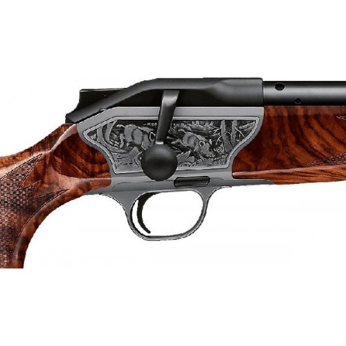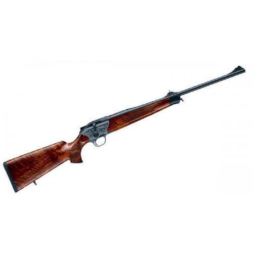 Карабин с продольно-скользящим затвором R8 в комплектации Lux. Ложа выполнена из ореха высшего сорта. Гравировка со сценой охоты на фальшдосках ствольной коробки. Десмодромный механизм спуска. Карабин оборудован антабками для крепления погона. Blaser R8 – это новая модель от лидера оружейного дела, она отличается быстротой, качеством и безопасностью. Карабин имеет поразительную скорость стрельбы, благодаря прецизионному спуску, идеально сбалансированным деталям ствола, радиальному затвору и сдельному кронштейну. Все это совмещено с прекрасной эргономикой приклада, что позволяет разместить руку на рукоятке максимально удобно и расслаблено. Также стрельба ускоряется с помощью замены магазина «вслепую», специальная пружина позволяет ему практически выпрыгнуть в ладонь, но это происходит только при одновременном нажатии на две кнопки. Магазин блокируется с помощью ползунка внутри него. При такой скорости и точности это оружие очень безопасное и надежное. Имеется два варианта зарядки (в том числе и сверху). Карабин короче чем обычный, так как магазин расположен над спусковым механизмом, это облегчает ствол и сам карабин. Карабин R8 оснащен технологией ZEISS iC, что автоматически включает световую точку при взводе оружия. Такая возможность значительно ускоряет прицеливание и выстрел. Вы будете поражены как удобно это оружие в транспортировке и уходе, R8 можно сложить даже в рюкзак, а потом быстро вернуть в боевую готовность, СТП не изменится при множественных разборках. Металлические детали карабина антикоррозийные, благодаря обработке металла по технологиям компании Blaser. Закрытая конструкция и полированная поверхность канала ствола позволяют упростить уход за оружием и не допускают попадания загрязнений. Даже в самых суровых условиях это оружие не подведет, благодаря устройству УСМ, которое контролирует положение спуска при открытии затвора. Многофункциональности карабину придает сменность ствола и два вида ложа. Благодаря этому он подходит для всех видов дичи в любой точке мира.