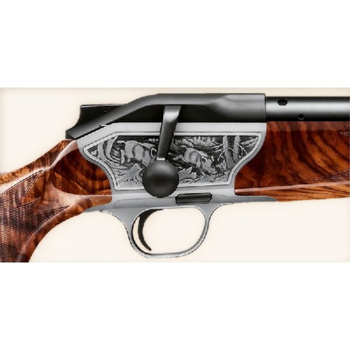 Карабин с продольно-скользящим затвором R8 в комплектации Lux. Ложа выполнена из ореха высшего сорта. Гравировка со сценой охоты на фальшдосках ствольной коробки. Десмодромный механизм спуска. Карабин оборудован антабками для крепления погона. Blaser R8 – это модель от лидера оружейного дела, она отличается быстротой, качеством и безопасностью. Карабин имеет поразительную скорость стрельбы, благодаря прецизионному спуску, идеально сбалансированным деталям ствола, радиальному затвору и сдельному кронштейну. Все это совмещено с прекрасной эргономикой приклада, что позволяет разместить руку на рукоятке максимально удобно и расслаблено. Также стрельба ускоряется с помощью замены магазина «вслепую», специальная пружина позволяет ему практически выпрыгнуть в ладонь, но это происходит только при одновременном нажатии на две кнопки. Магазин блокируется с помощью ползунка внутри него. При такой скорости и точности это оружие очень безопасное и надежное. Имеется два варианта зарядки (в том числе и сверху). Карабин короче чем обычный, так как магазин расположен над спусковым механизмом, это облегчает ствол и сам карабин. Такая возможность значительно ускоряет прицеливание и выстрел. Вы будете поражены как удобно это оружие в транспортировке и уходе, R8 можно сложить даже в рюкзак, а потом быстро вернуть в боевую готовность, СТП не изменится при множественных разборках. Металлические детали карабина антикоррозийные, благодаря обработке металла по технологиям компании Blaser. Закрытая конструкция и полированная поверхность канала ствола позволяют упростить уход за оружием и не допускают попадания загрязнений. Даже в самых суровых условиях это оружие не подведет, благодаря устройству УСМ, которое контролирует положение спуска при открытии затвора. Многофункциональности карабину придает сменность ствола и два вида ложа. Благодаря этому он подходит для всех видов дичи в любой точке мира.
