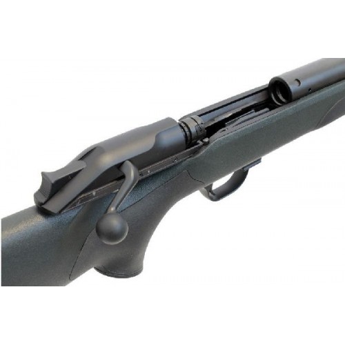 Ручка затвора — синтетический шарик. Прямой затвор Blaser позволяет мгновенно производить перезарядку. Процесс перезаряжания настолько удобен и интуитивен для стрелка, что карабин Blaser R8 по скорости стрельбы напрямую приближается к самозарядным карабинам.