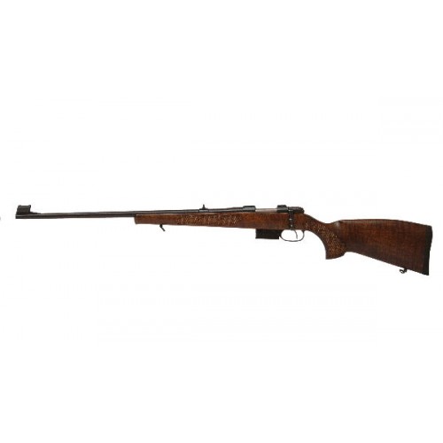 Нарезной охотничий карабин 223 калибра CZ 527 Lux 223 rem - винтовка с продольно-скользящим болтовым затвором, съемным однорядным магазином, вмещающим пять патронов 5.56 калибра и лакированной ложей из древесины грецкого ореха, которая придает этой модели классический и благородный вид.