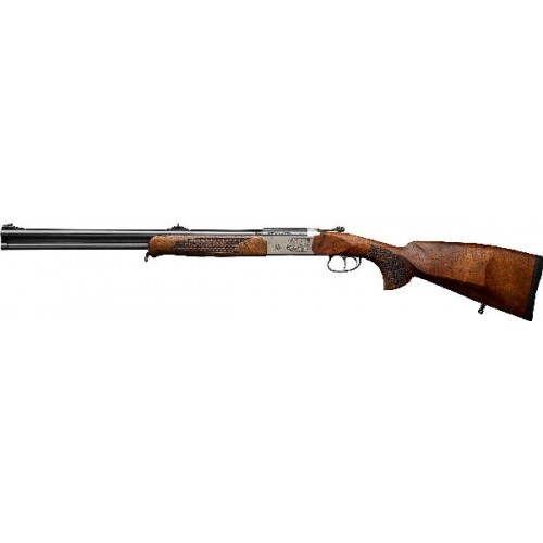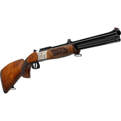 Переломный карабин, выполненный в орехе, с ручной перезарядкой. Калибр 30-06 Spring. Количество зарядов - 2 шт. Количество спусковых крючков - 2 шт. Наличие сменных чоков, цилиндр. Общая длина ~ 1050 мм. Приклад пистолетный. Система выброса гильз - экстрактор.