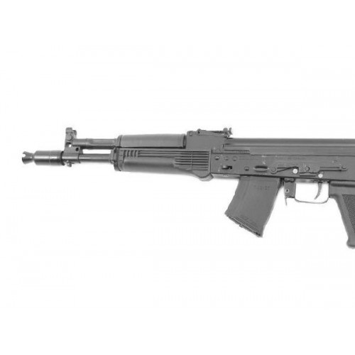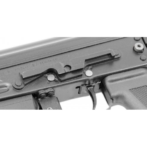 "Сайга-МК" - вариант карабина "Сайга-М" с укороченным стволом и блокировкой, не позволяющей вести стрельбу со сложенным прикладом.