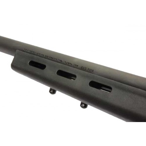 Легендарная модель 700, несмотря на свое давнее происхождение, по-прежнему популярна. Затворная группа модели 700 - модификация системы Mauser, лучшая в своем классе. Наличие нескольких модификаций Remington 700, изготовленных с очень высоким качеством, обладающих высокой точностью и умеренной ценой, делает винтовки Remington 700 очень популярными среди стрелков-целевиков и охотников. Все модификации модели 700 показывают очень высокие результаты без какой-либо доводки, "из коробки". Магазин имеет классическую конструкцию Маузера, вмещает 3-5 патронов в зависимости от калибра. Спусковой механизм Remington 700 полностью регулируем. Система "three-rings-of-steel" предотвращает прорыв пороховых газов и разрыв гильзы. Remington 700 SPS Varmint - это карабин для высокоточной стрельбы. Толстостенный тяжелый ствол Varmint эффективно устраняет вибрацию и не перегревается даже при быстрой стрельбе. Цевье винтовки выполнено более широким, чем у охотничьих моделей; его нижняя часть – плоская, что обеспечивает большее удобство при стрельбе с мешков или упоров. В передней части цевья предусмотрен ряд щелевидных отверстий для циркуляции воздуха, что способствует более быстрому охлаждению ствола при нагреве, вызванном интенсивной стрельбой. Покрытие ствола — матовое воронение, не дающее бликов. Remington 700 SPS Varmint имеет тяжёлый ствол, ударопрочный пластиковый приклад, эргономичное черное синтетическое вентилируемое ложе, имеющее отверстия для снижения веса и лучшего рассеивания тепла. Карабин предназначен для боеприпаса .223 Rem.