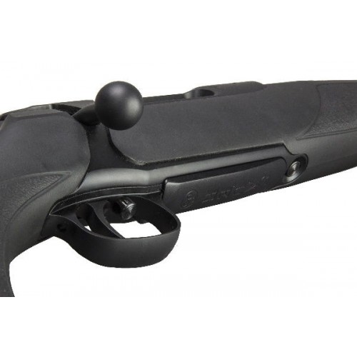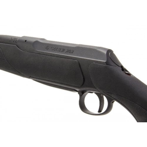 Полимерная ложа черного цвета придаёт винтовке легкость и комфорт при стрельбе. Кроме этого, пластик надежен, практичен, не боится влаги и устойчив к механическому воздействию. Модель Sauer 202 Varmint XT имеет утяжеленный ствол для высокоточной стрельбы на дальнюю дистанцию.