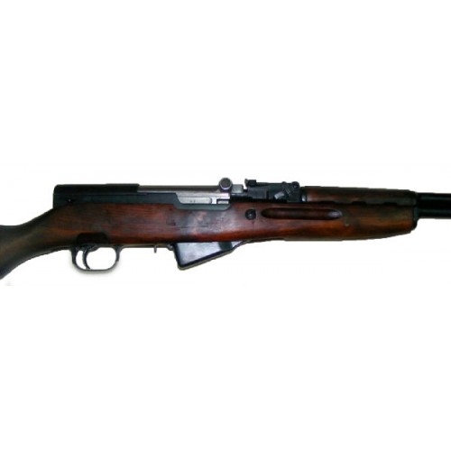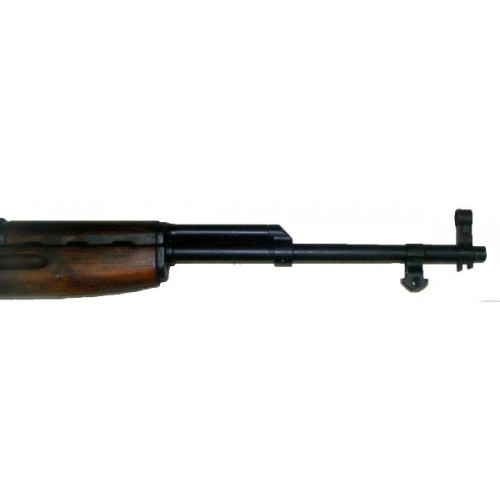 Самозарядный карабин Симонова СКС-45 и выпускается под патрон калибра 7,62х39. Ствол 520мм. Карабин охотничье-промысловый самозарядный 'ОП-СКС' предназначен для промысловой охоты на среднего и крупного зверя в различных погодных и климатических условиях при температуре окружающей среды от -50° до +50°. Карабин создан на базе известного самозарядного карабина Симонова СКС-45 и выпускается под патрон калибра 7,62х39. Автоматическая перезарядка карабина происходит за счет использования энергии пороховых газов, отводимых из канала ствола в газовую камеру и энергии возвратной пружины. Запирание канала ствола осуществляется перекосом затвора при продольном скольжении затворной рамы. Ударно-спусковой механизм куркового типа обеспечивает производство одиночных выстрелов и постановку на предохранитель. Предохранитель флажкового типа расположен в спусковой скобе корпуса ударно-спускового механизма. Питание карабина производится из неотъемного магазина. В прикладе со стороны затыльника располагается пенал с принадлежностями для чистки и разборки карабина. Открытые прицельные приспособления карабина состоят из мушки, регулируемой в двух плоскостях, и прицельной планки с дистанциями 100-1000 м. С левой стороны ствольной коробки карабина установлена база для крепления кронштейна оптического прицела. Прицельную стрельбу с открытого прицела можно вести, не снимая оптического прицела.