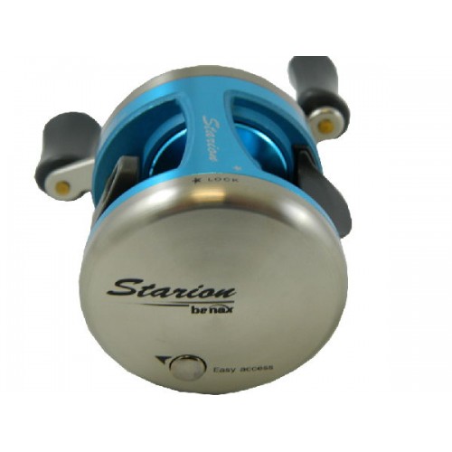 Катушка Banax Starion 100 L предназначена под левую руку. Кольцо лесоукладывателя покрыто нитридом титана, обеспечивает стойкость к истиранию. Катушка оснащена системой мгновенного антиреверса. На перфорированной легкой шпуле размещены восемь центробежных грузиков, которые выключаются благодаря регулятору. Рукоятка катушки двойная с мягкими на ощупь кулачками, удобна в использовании. Цвет катушки синий/золотой/красный.