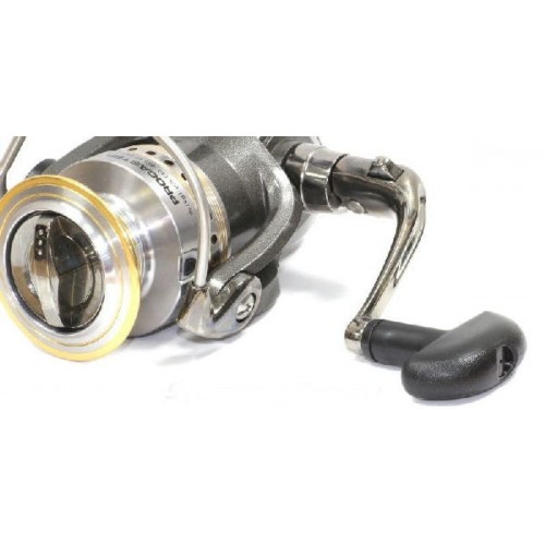 Среди обширной линейки безынерционных катушек Daiwa Procaster X с передним фрикционом почти каждый рыболов сможет подобрать подходящий экземпляр. Эта серия предлагается в шести размерах, среди которых есть модели, весящие от 290 до 425гр. А вот передаточное число у всех экземпляров составляет 5.3:1. Каждая катушка оснащается десятью шарикоподшипниками, обеспечивающими мягкость хода. Для предотвращения перекручивания лески и дальнейшего образования петель и "бород", используются полая дужка AirBail и специальный ролик TwistBuster. Отдельного внимания заслуживает алюминиевая шпуля ABS, бортик которой покрыт нитридом титана для уменьшения трения и увеличения дальности заброса. Кстати, кроме основной шпули, в комплектацию входит еще одна запасная шпуля, которая может быть заполнена плетенкой или монофилом и меняться с основной при смене условий ловли. Как и большинство подобных катушек, Procaster X имеет фрикционный тормоз с регулятором в передней части, рассчитанный на максимальные нагрузки в пределах 2-6 кг (данный показатель зависит от конкретной модели). Рукоять оснащена плоским или Т-образным кнобом, может складываться одним движением при нажатии специальной клавиши.