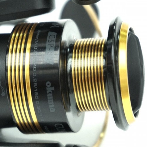 Okuma Custom Spin спининговая катушка с системой привода из 6 подшипников и системой точного эллиптического зубчатого сцепления, которая создаёт меньше трения, из-за большей точности сцепления придают легкость вращения и увеличивают длительность срока службы.