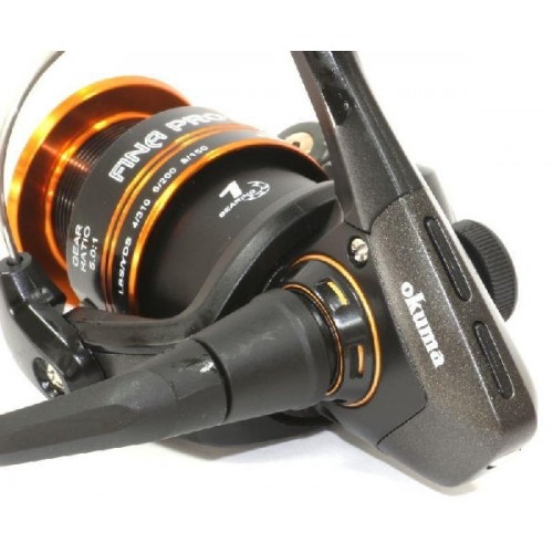 Особенности катушки Okuma Fina pro FP FD: - мультидисковая тормозная система с промасленными войлочными шайбами. - роликовый подшипник системы мгновенного анти-реверса. - устойчивый к коррозии корпус из графита. - высокоточный передаточный механизм эллиптической формы. - точеная двухцветная шпуля из анодированного алюминия. - увеличенная душка лесоукладывателя из анодированного алюминия. - компьютерная система балансировки ротора RESII .