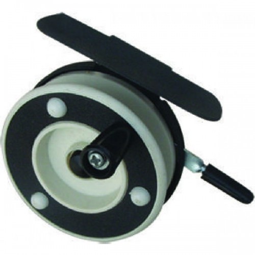 Инерционная проводочная катушка со стопором обратного хода. Корпус катушки выполнен из металла. Шпуля изготовлена из ударопрочного полистирола с декоративной металлической накладкой, диаметр шпули 70 мм.