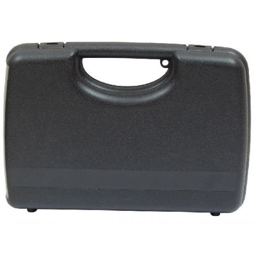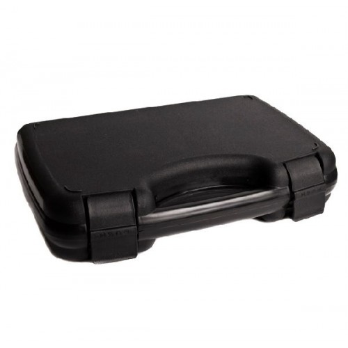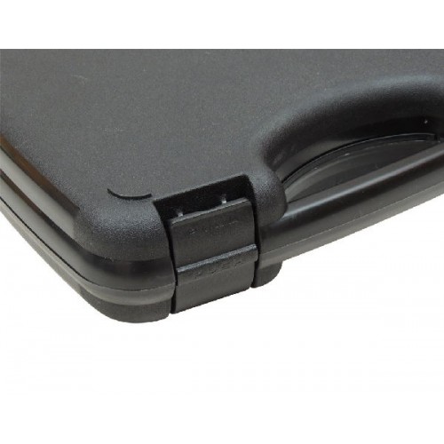 Кейс изготовлен из ударопрочного пластика, что позволяет безопасно перевозить пистолет. Внутри находится поролоновая прокладка, что защищает оружие от повреждений. Кейс закрывается на 2 прочные защелки. Габариты: 30,5x18,5x8,5 см.