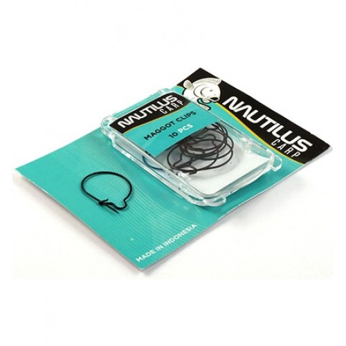 Nautilus Maggot Clips – клипса для насаживания опарыша. Изготовлена из тонкого прутка с острым наконечником, который легко прокалывает личинки не повреждая их тела. При помощи клипсы можно создать объемную наживку из дюжины опарышей привлекательную для крупной рыбы.