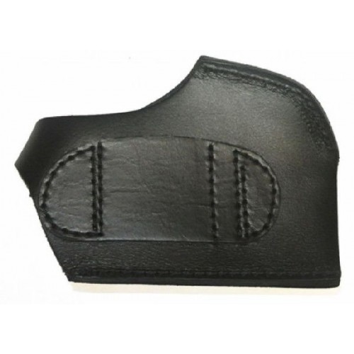 Плотно удерживает оружие благодаря антискользящим свойствам кожи и специальному ремешку-фиксатору на кнопке.