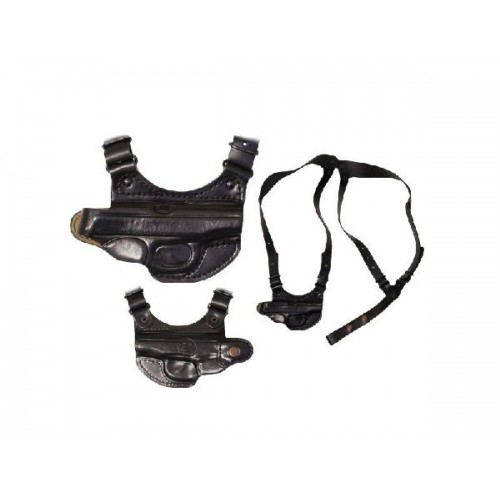Наплечная кобура предназначена для горизонтальной носки. Она выполнена из натуральной кожи. Пистолет надежно фиксируется с помощью кнопки. В комплект входит подвесная система, благодаря которой обеспечивается постоянство расположения оружия на теле. Регулируемый ремень способствует комфортной носке, а также равномерно распределяет нагрузку.