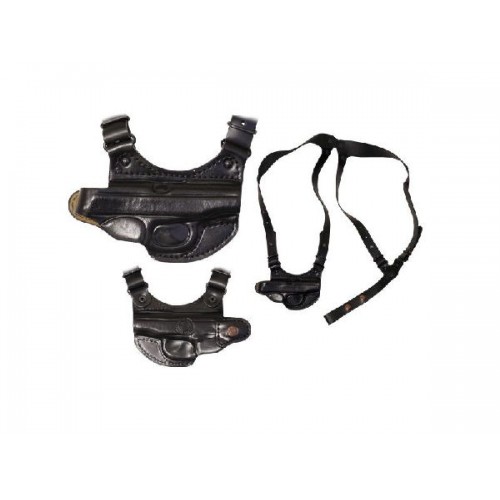 Наплечная кобура удобно крепится с помощью подвесной системы. Для достижения максимального комфорта ремешки регулируются по длине. При носке кобура принимает горизонтальное положение. Защелкивающаяся кнопка надежно фиксирует оружие.