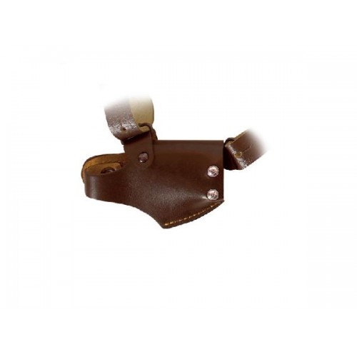 Кобура подойдет тем, кто предпочитает плечевой способ ношения оружия. Модель изготовлена из натуральной кожи. Пистолет удобно фиксируется внутри, пристегивается кнопкой. Подвесная система с фигурными ремнями способствует комфортной носке и равномерному распределению нагрузки.