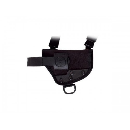 Кобура с наплечным способом крепления удобна в носке. Она присоединяется к подвесной системе с регулируемыми ремешками. Боковая пристежка фиксирует ее к поясному ремню, помогая равномерно распределить нагрузку. Кобура оснащена ремешком с кнопкой для надежной посадки оружия и узлом с металлическим ускорителем, обеспечивающим быстрое извлечение.