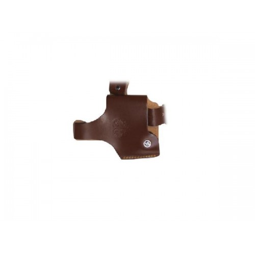 Кожаная кобура оснащена двумя ушками на корпусе. С их помощью она крепится к подвесной системе с регулируемыми ремешками. Фиксации пистолета способствует ремешок с кнопкой, а быстрому извлечению - узел с металлическим ускорителем.