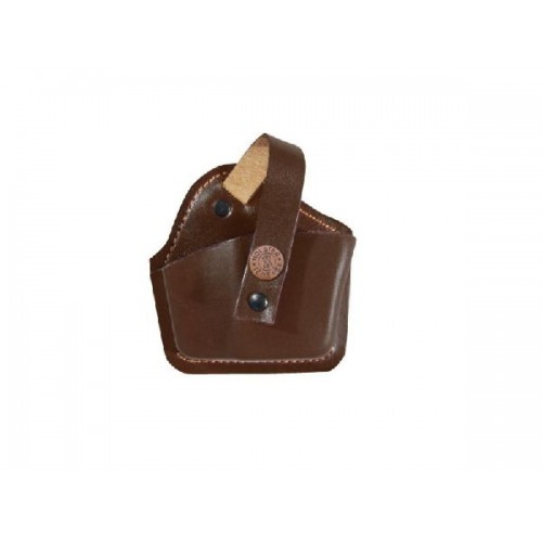 Поясная кобура с помощью плоской шлевки удобно крепится на ремне. При этом оружие располагается в вертикальном положении. Его фиксирует ремешок с кнопкой. Открытая рукоятка пистолета помогает его быстрому извлечению.