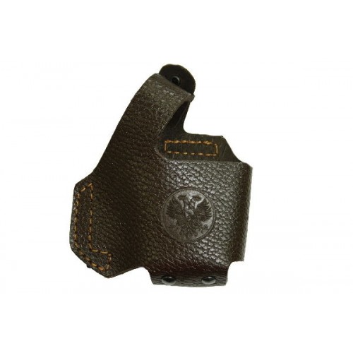 Кобура подходит для ношения оружия на поясе. Она крепится с помощью шлевки. Корпус пистолета, за исключением рукоятки, закрыт. Его надежной фиксации внутри способствует ремешок с кнопкой. А металлический ускоритель помогает быстро вытащить пистолет из кобуры.