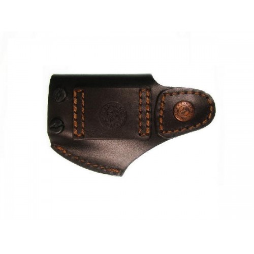 Поясная кобура изготовлена из натуральной кожи. Она легко присоединяется к ремню с помощью шлевки. Оружие надежно фиксируется внутри. Открытая рукоятка необходима для того, чтобы можно было оперативно вытащить пистолет из кобуры.