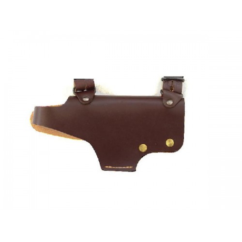 Наплечная кобура оснащена рядом достоинств. Она плотно удерживает пистолет внутри, благодаря застегивающемуся на кнопку ремешку. Подвесная система, оснащенная регулируемыми лямками, которые слегка расширены в передней части, равномерно распределяет нагрузку. Натуральная кожа, из которой изготовлена модель, не вызывает аллергии, долговечна в использовании.